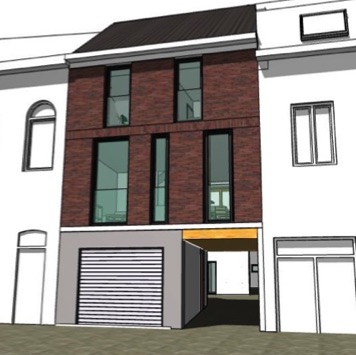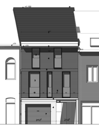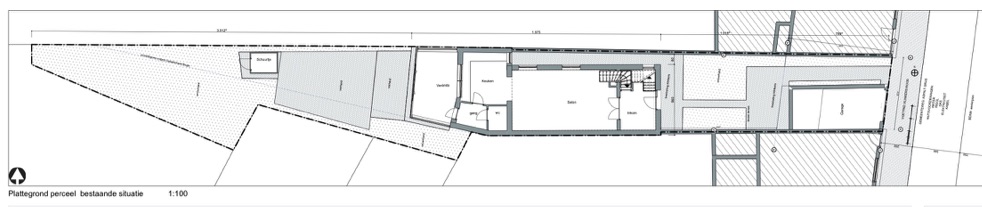 In Anderlecht, this plot of land had a garage building on the street and, to the side, a passage that led to a house some 25 meters back from the street.
