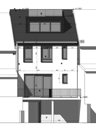 The client commissioned a second house, to be constructed over the garage, between two neighbouring houses. With the garage function remaining in place, the typology of the drive-in dwelling was the obvious choice.