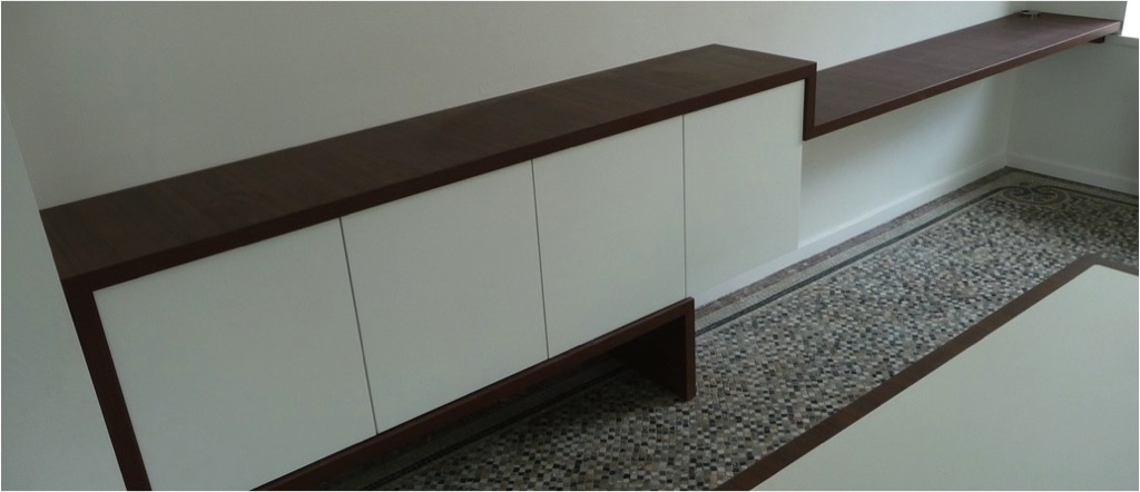 New: self-designed furniture, including cupboard with integrated sliding doors, tables and worktop/storage furniture;