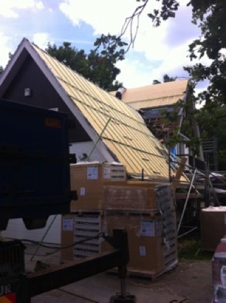 The roof is insulated with wood fibres. This is ecological sound material insulates well and also reduces the noise pollution from low-flying aircraft. Moreover, it can absorb and release moisture and can store heat during summer. With the right material four issues are resolved in one go.