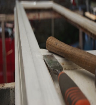 A craftsman has enlarged the grooves for the glass so that double glazing can be fitted in the window frames, without the need for a raised glazing bar that disrupts the image.