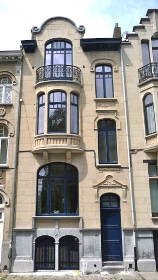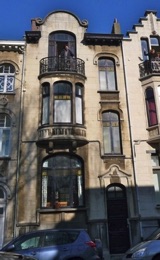 This terraced house from 1909 has a very beautiful stone facade, but in need of a facelift. Despite the poor maintenance, the window frames are still largely intact after one hundred years, a good indication of the quality of the wood from that period.